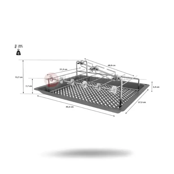 - Wir empfehlen auf der untersten Ebene eine Universalpfanne oder ein Backblech als Auffangschale.