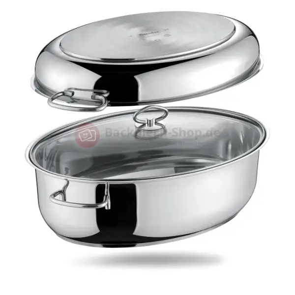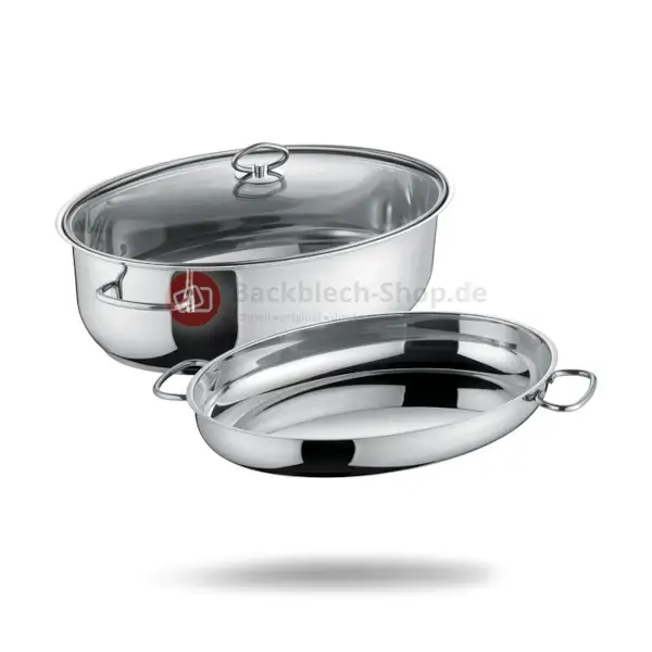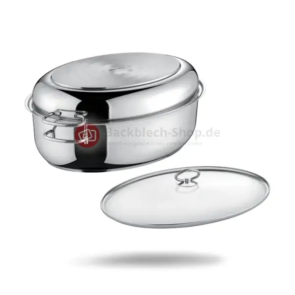 - Berndes ovaler Edelstahlbräter, 3in1 inkl. Gittereinsatz und Glasdeckel 38 x 25,5 cm