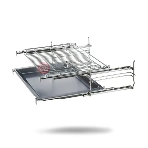 - Mit dem 2-fach Teleskopauszug mit Stoppfunktion können Sie Backbleche, Gitterroste oder die Universalpfanne auf zwei Ebenen herausziehen.