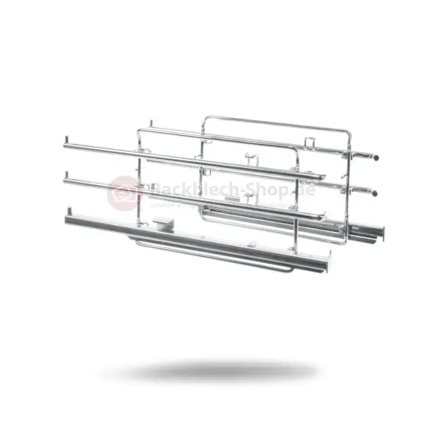 - Mit den Teleskopschienen kann das Zubehör ohne Umkippen aus dem Ofen gezogen werden.