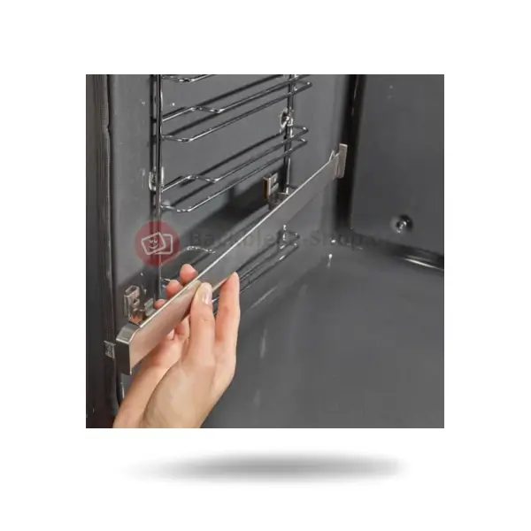 - Das ausziehbare Schienensystem ermöglicht es, das Backblech sicher und einfach aus dem Backofen zu ziehen, ohne zu kippen.