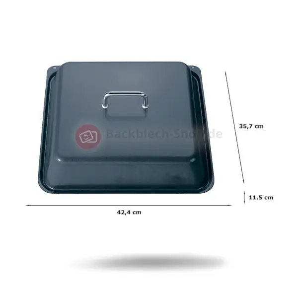 - Emaillierter Deckel zum schonenden Braten großer Fleischstücke mit der Profipfanne