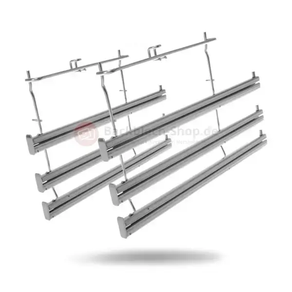 - Mit den Teleskopschienen auf Ebene 1, 2 und 3 kann das Zubehör komplett aus dem Ofen gezogen werden, ohne zu kippen