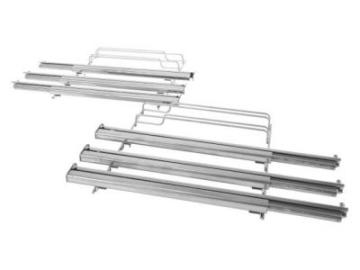 Mit den Teleskopschienen auf den Ebenen 1, 2 und 3 kann das Zubehör ohne Umkippen aus dem Ofen herausgezogen werden